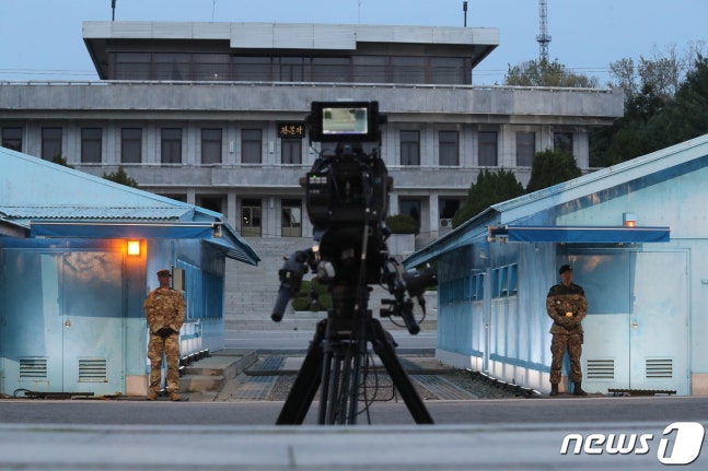 4.27 판문점선언 1주년 기념식이 열린 27일 오후 파주시 진서면 판문점에 방송 카메라가 놓여 있다. 2019.4.27/뉴스1 © News1 사진공동취재단(서울=뉴스1) 문대현 기자 = 지난해 4월 남북 정상이 함께 걸어 역사적인 장면이 연출됐던 판문점 '도보다리'가 1일부터 민간인에게 개방된다.