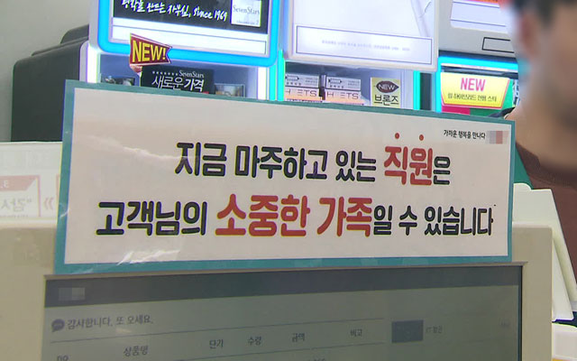 서울 동대문에 있는 한 편의점에서 이 문구를 붙여두고 영업하는 사장님을 만났습니다. 편의점을 운영한 지 4년째, 더 이상 아르바이트생들에게 막말을 하는 손님들을 두고 볼 수 없어 계산대 옆에 경고문을 붙였습니다. 혹여 손님들이 불쾌할까, 자신을 '사장놈'이라고 몸소 낮췄습니다.