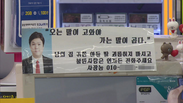 > "남의 집 귀한 아들딸들 건드리지 말고 불만사항 있으면 언제든 전화 주세요-사장놈"