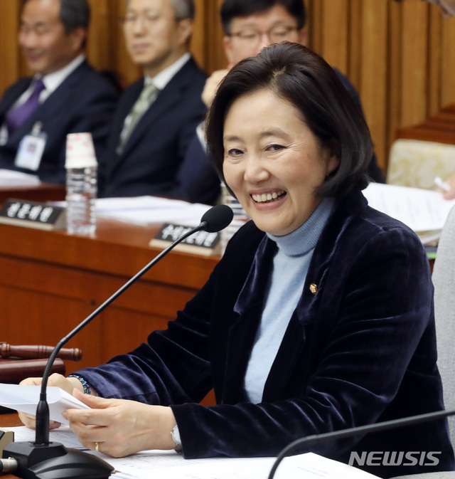 >		  【서울=뉴시스】박영태 기자 = 13일 오전 서울 영등포구 여의도 국회에서 열린 법제사법위원회의 사법개혁 특별위원회에서 박영선 위원장이 위원장 사임안건을 의결하며 웃고 있다. 2019.03.13. since1999@newsis.com <저작권자ⓒ 공감언론 뉴시스통신사. 무단전재-재배포 금지.>